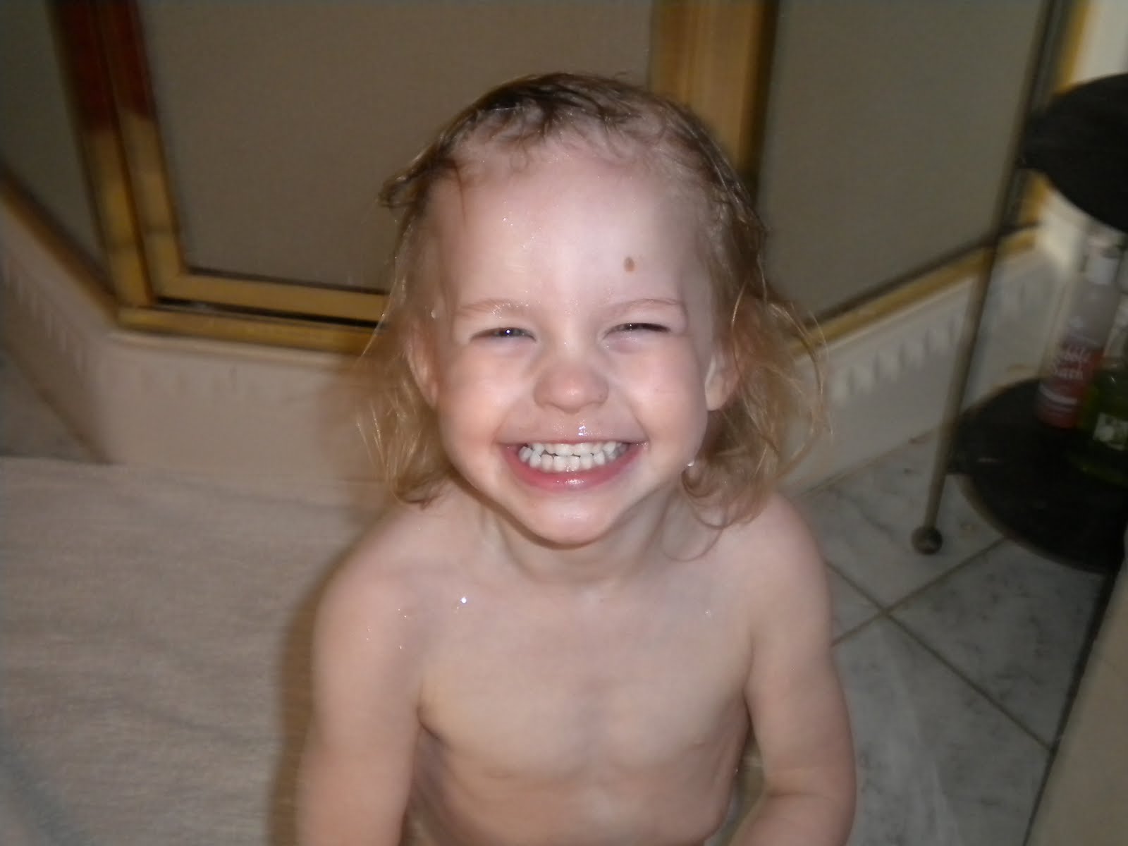 Last Friday Lizzie Kate stuck her head in the potty. When, I asked her why she said "my hair was dirty"!! I have no idea what I am going to do with this child!! She is such a mess!! :)